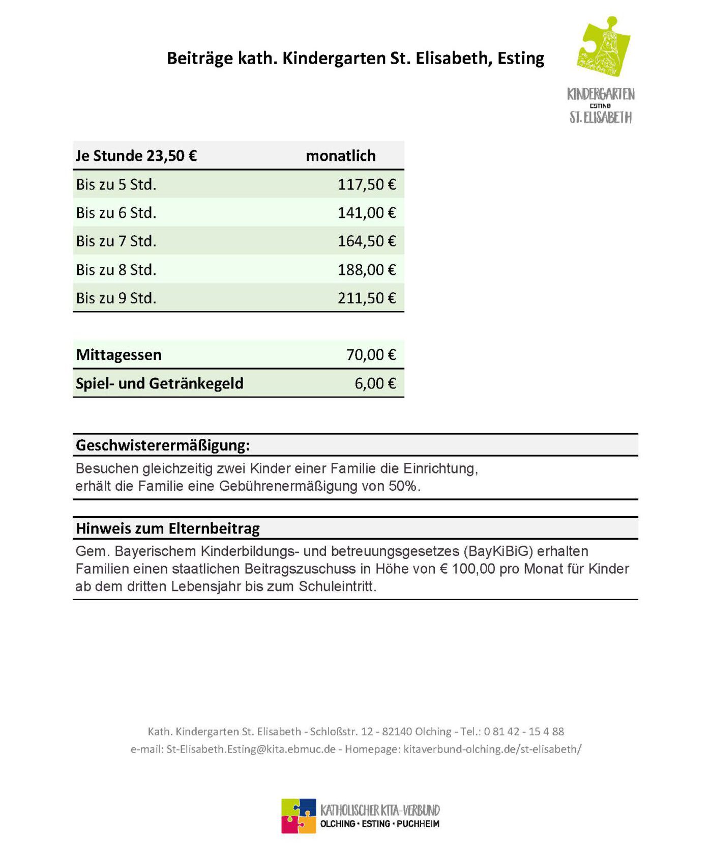 ♣ ELTERNBEITRÄGE KATH. KINDERGARTEN ST. ELISABETH